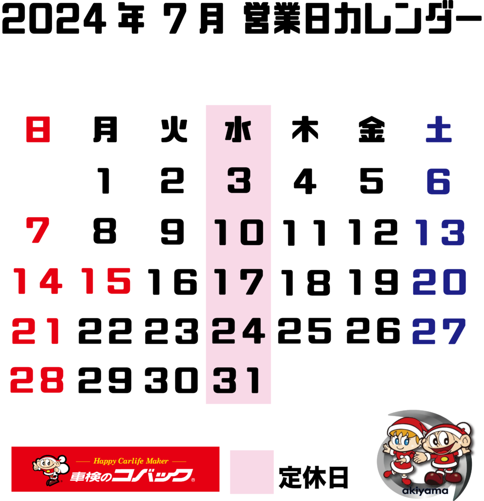 コバック7月営業日のお知らせ