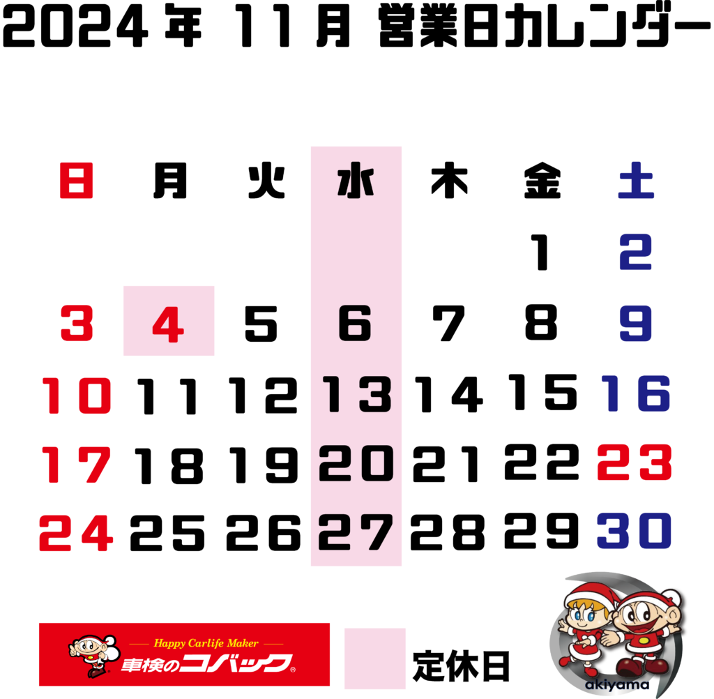 コバック11月営業日のお知らせ 2024 10/20 車検 2024年10月20日 news-admin 車検 よかったらシェアしてね! URLをコピーしました! URLをコピーしました! 関連記事 2025年4月から、車検を受けられる期間が延長します 2025年3月4日 タイヤ交換で燃費が変わる?軽自動車に最適なタイヤ選びのコツ 2025年2月22日 コバック2025年3月営業のお知らせ 2025年2月20日 コバック2025年2月営業日のお知らせ 2025年1月23日 新春キャンペーン開催中! 2025年1月6日 コバック12月営業日のお知らせ 2024年11月22日 OBD検査が始まります 2024年9月21日 コバック9月営業日のお知らせ 2024年8月22日