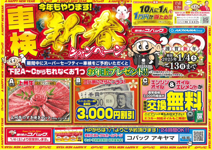 本年もアキヤマコバックをよろしくお願いいたします<(_ _)>